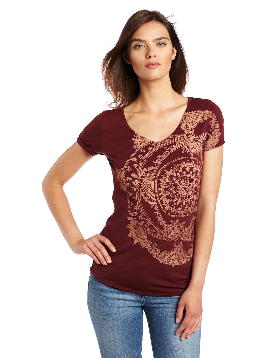 Lucky Brand Women's Medallion Tee, Rusted Burgundy, Small